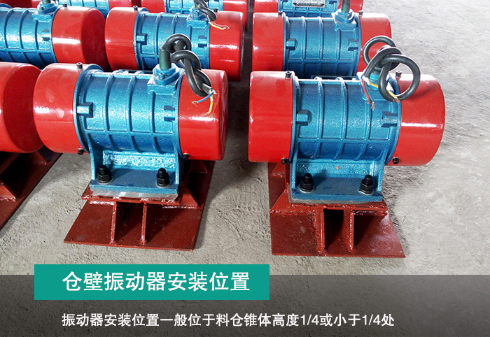 振動(dòng)器安裝位置一般位于料倉錐體高度1/4或小于1/4處。