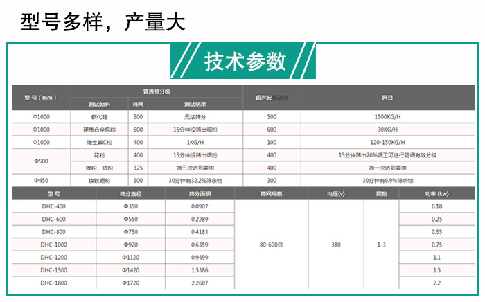 環(huán)氧樹脂超聲波振動篩型號有DHC-400、DHC-600、DHC-800、DHC-1000等型號,型號越大處理量越大,處理量越大,所帶來的產(chǎn)量也會越大