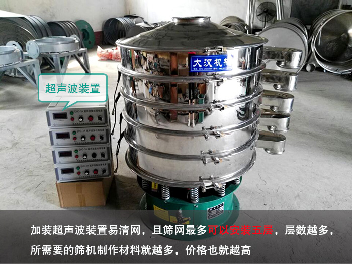 超聲波振動(dòng)篩的篩網(wǎng)可以采用多層設(shè)計(jì),由于是在傳統(tǒng)旋振篩基礎(chǔ)上加裝了一個(gè)超聲波篩分系統(tǒng),所以結(jié)構(gòu)也極其相似,篩網(wǎng)多可以安裝五層,篩分出多種不同規(guī)格物料,層數(shù)越多,所需要的篩機(jī)制作材料就越多,價(jià)格也就越高。