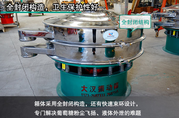 三次元振動篩箱體采用全封閉構(gòu)造,還有快速束環(huán)設計,專門解決葡萄糖粉塵飛揚、液體外泄的難題
