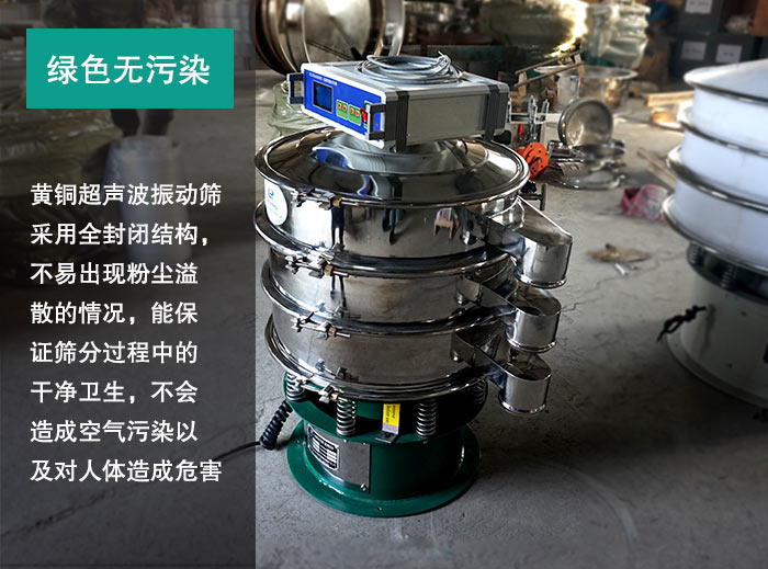 黃銅超聲波振動(dòng)篩采用全封閉結(jié)構(gòu),在篩分時(shí)不會(huì)出現(xiàn)粉塵溢散的情況,能保證篩分過(guò)程中的干凈衛(wèi)生,不會(huì)造成空氣污染以及對(duì)人體造成危害。
