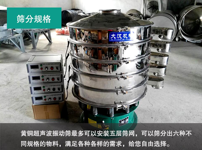黃銅超聲波振動(dòng)篩多可以安裝五層篩網(wǎng),可以篩分出六種不同規(guī)格的物料,滿(mǎn)足各種各樣的需求,給您自由選擇。