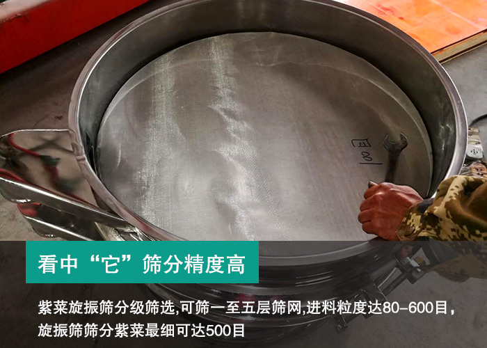 紫菜旋振篩分級篩選,可篩一至五層篩網(wǎng),進(jìn)料粒度達(dá)80-600目,旋振篩篩分紫菜細(xì)可達(dá)500目(28微米)過濾細(xì)可達(dá)5微米,篩分精度高,能同時(shí)進(jìn)行二至六個(gè)等級的分選或過濾。