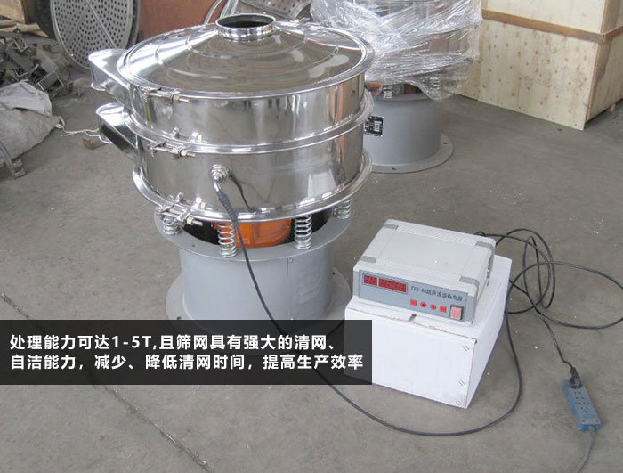 超聲波振動篩處理能力可達(dá)1-5T,且篩網(wǎng)具有強(qiáng)大的清網(wǎng)、自潔能力,減少、降低清網(wǎng)時間,提高生產(chǎn)效率,超聲波裝置又能很好的解決粉末涂料篩網(wǎng)堵塞的問題