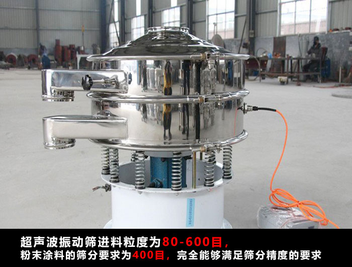 超聲波振動篩進(jìn)料粒度為80-600目,粉末涂料的篩分要求為400目,超聲波振動篩的篩分精度比較高,完全能夠滿足篩分精度的要求