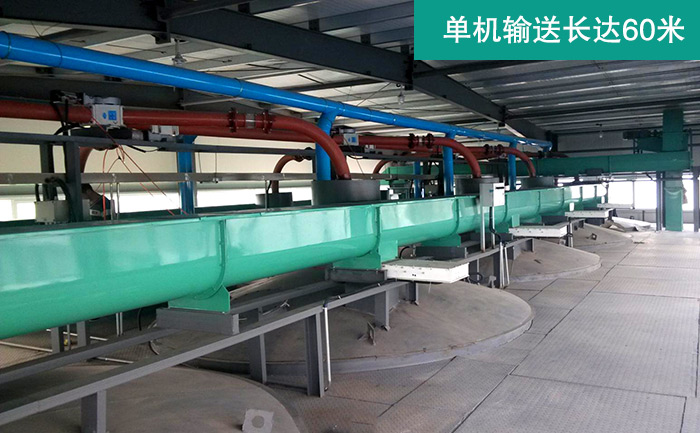 單機(jī)輸送長(zhǎng)度可達(dá)60米。并可根據(jù)用戶需要,采用多級(jí)串聯(lián)式安裝,超長(zhǎng)距離輸送物料。