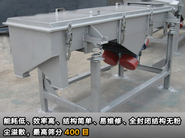直線振動(dòng)篩是目前為廣泛應(yīng)用的篩分設(shè)備,可用于流水線中實(shí)現(xiàn)自動(dòng)化作業(yè)。具有能耗低、效率高、結(jié)構(gòu)簡(jiǎn)單、易維修、全封閉結(jié)構(gòu)無粉塵溢散的特點(diǎn)。高篩分目數(shù)400目,可篩分出7種不同粒度的物料。直線振動(dòng)篩亦可對(duì)粉狀、顆粒狀物料的篩選和分級(jí),廣泛應(yīng)用于塑料、磨料、化工、醫(yī)藥、建材、糧食、炭素、化肥等行業(yè)。