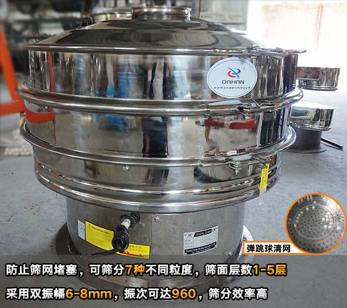 不銹鋼振動(dòng)篩配備有彈跳球裝置,它利用自身彈力和重量,隨著不銹鋼振動(dòng)篩分化肥的運(yùn)行而產(chǎn)生跳動(dòng),對(duì)振動(dòng)篩網(wǎng)面進(jìn)行清理,防止篩網(wǎng)堵塞,可篩分7種不同粒度的物料,篩面層數(shù)1-5層,增加單次采用雙振幅6-8mm,振次可達(dá)960,篩分效率高