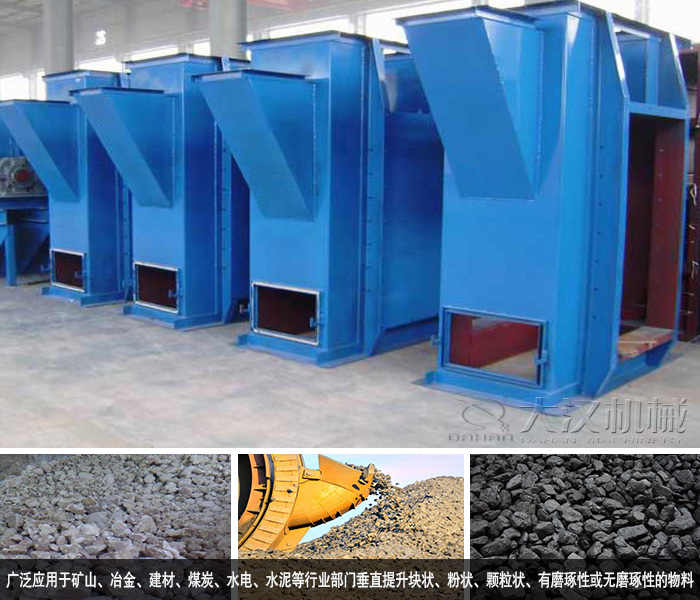 NE型板鏈斗式提升機(jī)廣泛應(yīng)用于礦山、冶金、建材、煤炭、水電、水泥等行業(yè)部門垂直提升塊狀、粉狀、顆粒狀、有磨琢性或無磨琢性的物料,且物料溫度不超過250℃。
