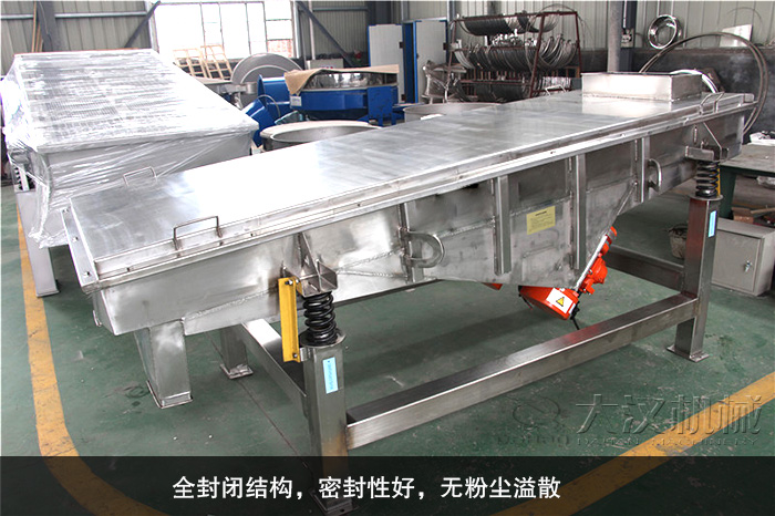 密封式不銹鋼直線振動篩:適用于粉塵含量大的物料,不污染環(huán)境。振動電機(jī)安裝于機(jī)器底部。