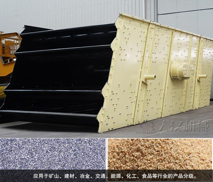 該振動(dòng)篩廣泛應(yīng)用于礦山、建材、冶金、交通、能源、化工、食品等行業(yè)的產(chǎn)品分級(jí)。