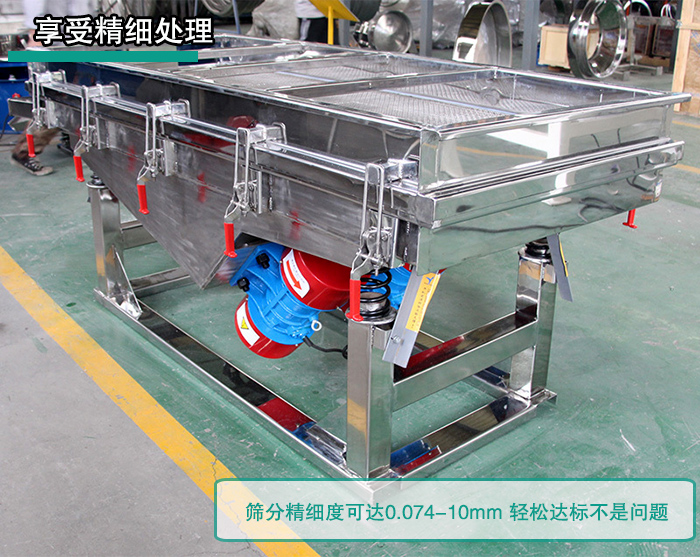 篩分精細(xì)度可達(dá)0.074-10mm,甜味劑篩分標(biāo)準(zhǔn)精細(xì)度為0.18mm,不銹鋼直線振動(dòng)篩能更好的滿足甜味劑的篩分要求,使用不銹鋼直線振動(dòng)篩精細(xì)處理,輕松達(dá)標(biāo)不是問題
