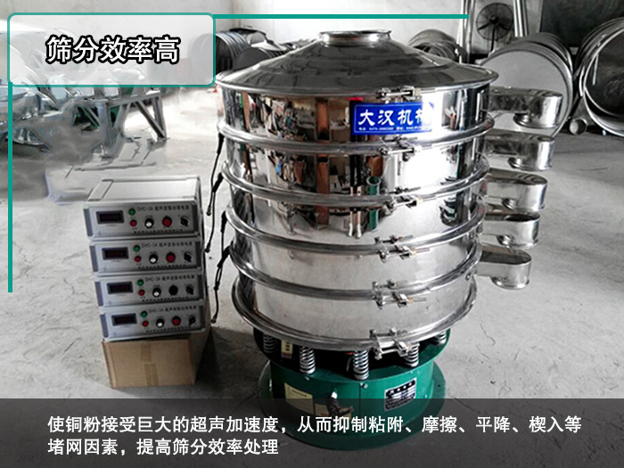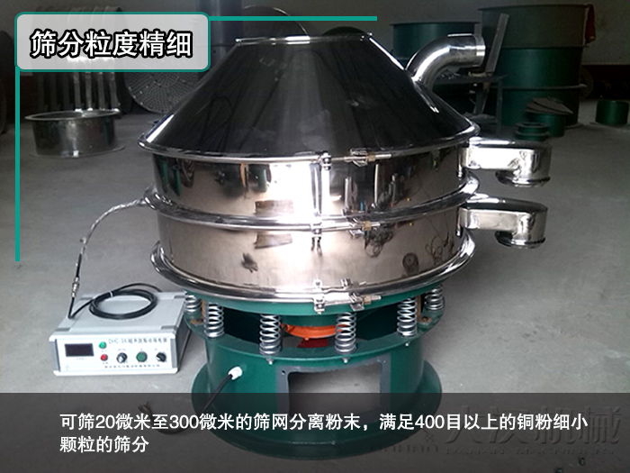 超聲波振動篩適用于20微米至300微米的篩網(wǎng)分離粉末,滿足400目以上的細小顆粒的篩分,很適合篩分銅粉
