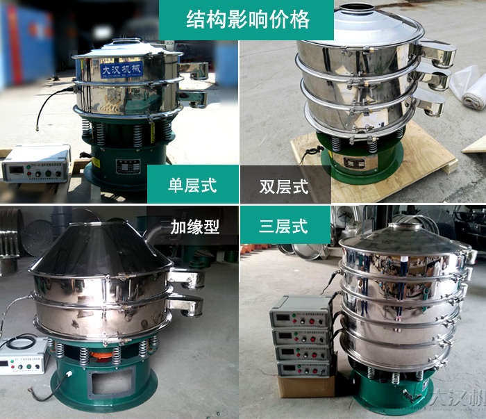 超聲波振動篩的結(jié)構(gòu)不同,一方面通常是指其篩網(wǎng)的結(jié)構(gòu)。超聲波振動篩的網(wǎng)架是經(jīng)過特殊設(shè)計而成的,篩網(wǎng)安裝時多可以安裝五層,篩分出六種不同規(guī)格合金粉末,用于不同的用戶需求,篩分功能非常強大。另一方面,是指在外觀的設(shè)計不同,超聲波振動篩是在傳統(tǒng)旋振篩的基礎(chǔ)上設(shè)計型號的,所以樣式分為加緣型、閘門型、單層式、雙層式、三層式。而這不同的結(jié)構(gòu),有不同的功能,因此價格是不一樣的,功能越多,設(shè)計越繁瑣價格就越高。