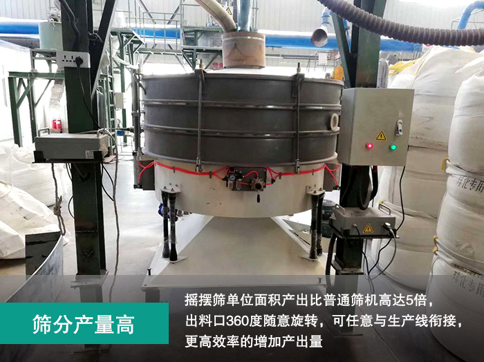 搖擺篩設(shè)備可以做成單層也可做成多層,型號從600mm-3200mm不等,型號不同處理量不同,型號越大篩分效率越高,篩機處理量越大;搖擺篩單位面積產(chǎn)出比普通篩機高達5倍,出料口360度隨意旋轉(zhuǎn),可任意與生產(chǎn)線銜接,更高效率的增加產(chǎn)出量