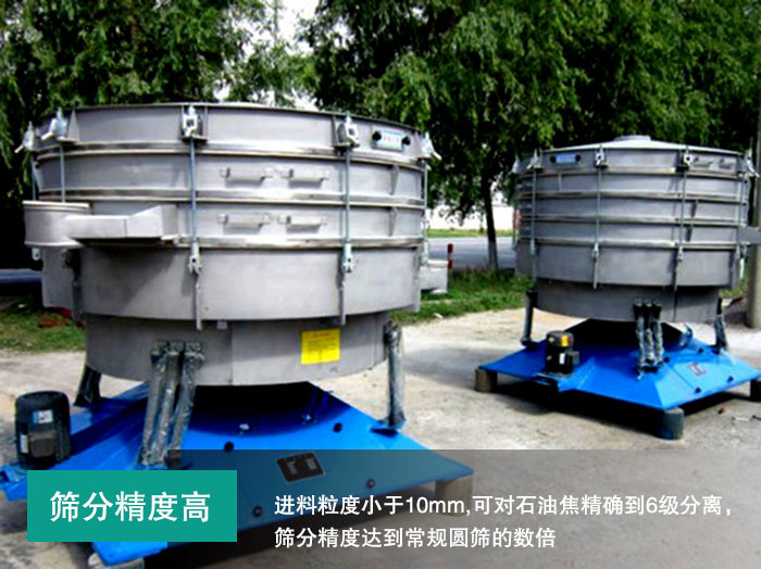 搖擺篩篩分石油焦進料粒度小于10mm,可對石油焦到6級分離,篩分精度達到常規(guī)圓篩的數(shù)倍