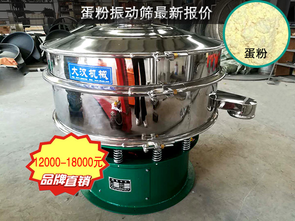 蛋粉振動(dòng)篩型號(hào)小至DH-600,大至DH-2000,不同型號(hào),功率不同,篩分蛋粉產(chǎn)量也是不同的,因此型號(hào)越大,功率越大產(chǎn)量越大,價(jià)格越高,反之價(jià)格越低
