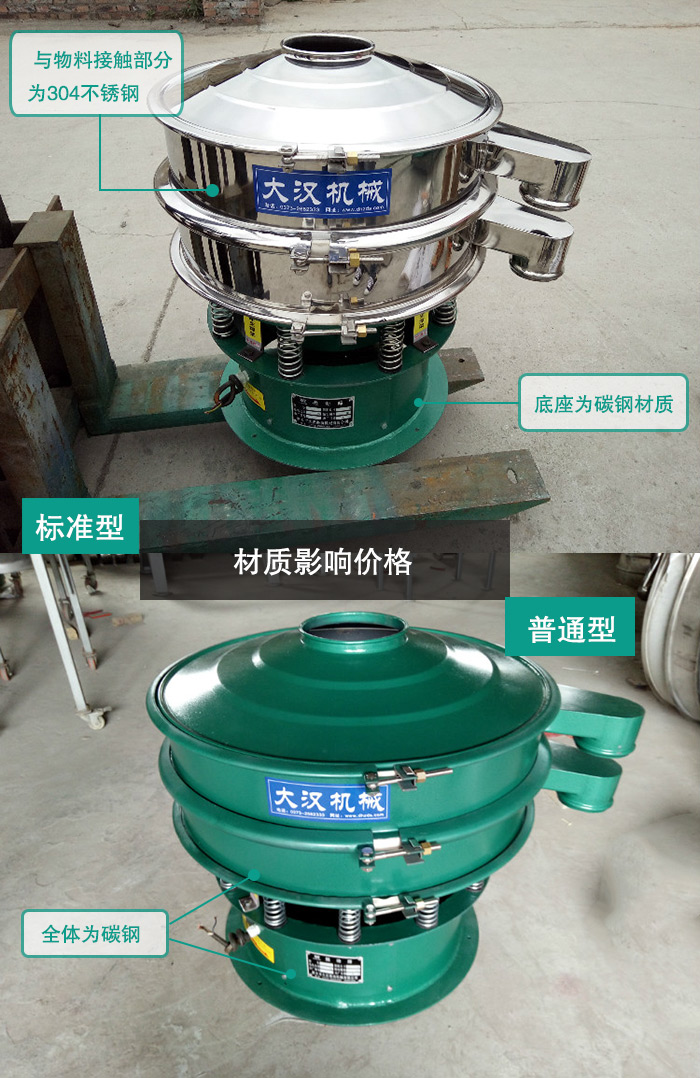不同材質(zhì),不同成本,不同價(jià)格,這跟您去買衣服是一樣的道理,同樣的一套衣服,布料純棉與半純棉的價(jià)格就是不一樣的,蛋粉振動(dòng)篩也是一樣的,蛋粉振動(dòng)篩分為標(biāo)準(zhǔn)型和普通型,標(biāo)準(zhǔn)型就是與物料接觸部分為304不銹鋼振動(dòng)篩,底座為碳鋼材質(zhì),普通型就是全體為碳鋼,蛋粉接觸部分也是碳鋼,市場(chǎng)上不銹鋼比碳鋼成本高,所以采用不同材質(zhì)的蛋粉振動(dòng)篩價(jià)格不同