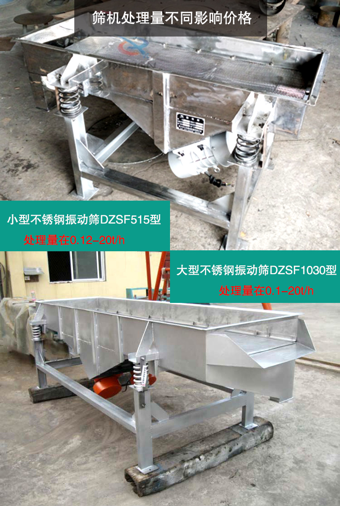 藥粉振動(dòng)篩型號(hào)有DZSF515、DZSF520、DZSF525、DZSF1020、DZSF1025、DZSF1030的類型,對(duì)于不同型號(hào)的藥粉振動(dòng)篩,篩粉產(chǎn)量不同,價(jià)格自然也是不同的